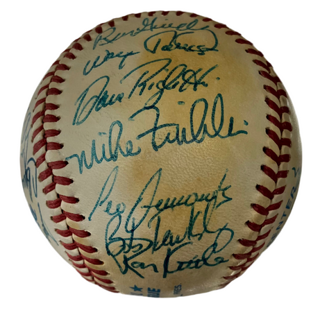 This is a 1986 New York Yankees Signed Baseball With Display Case