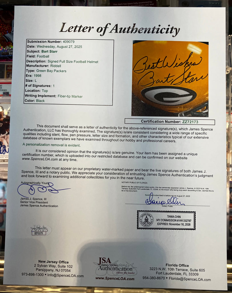 Bart Starr Signed Full Size Packers Helmet