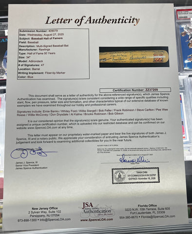 This is a Hall Of Fame 50 Years Signed Bat JSA COA