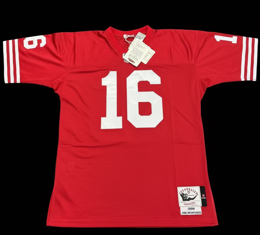This item is a San Francisco 49ers Jersey, it is a signed Mitchell and Ness Red Authentic Jersey with a "4xSB CHAMP" inscription.This jersey is signed by Joe Montana. It is Authenticated by Fanatics.