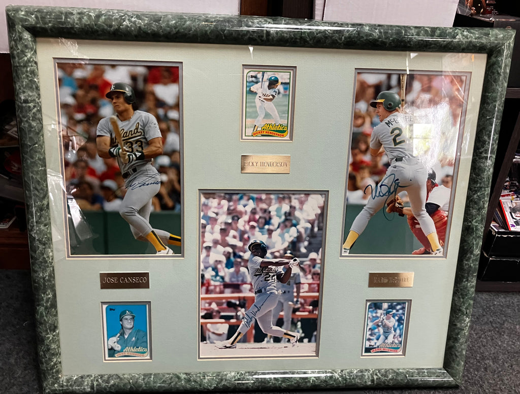 Jose Canseco, Ricky Henderson, and Mark McGwire Signed Framed Photos JSA LOA