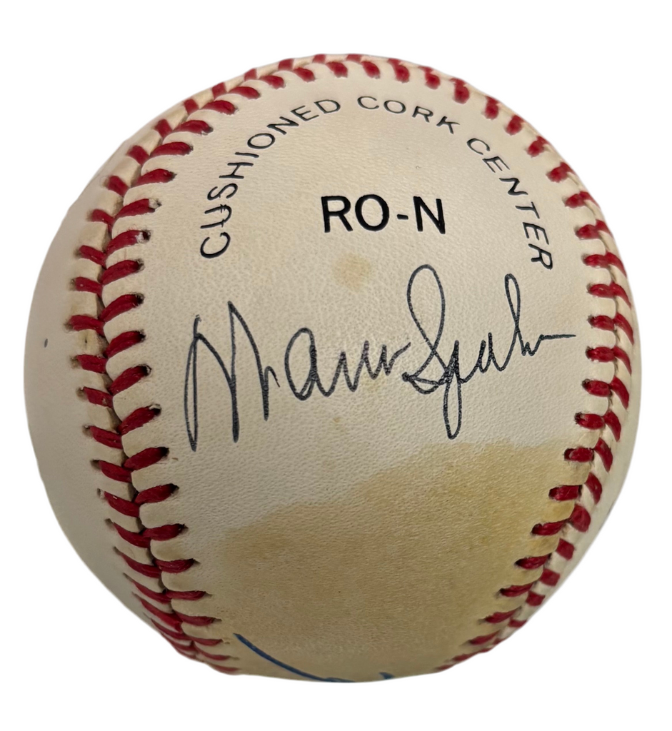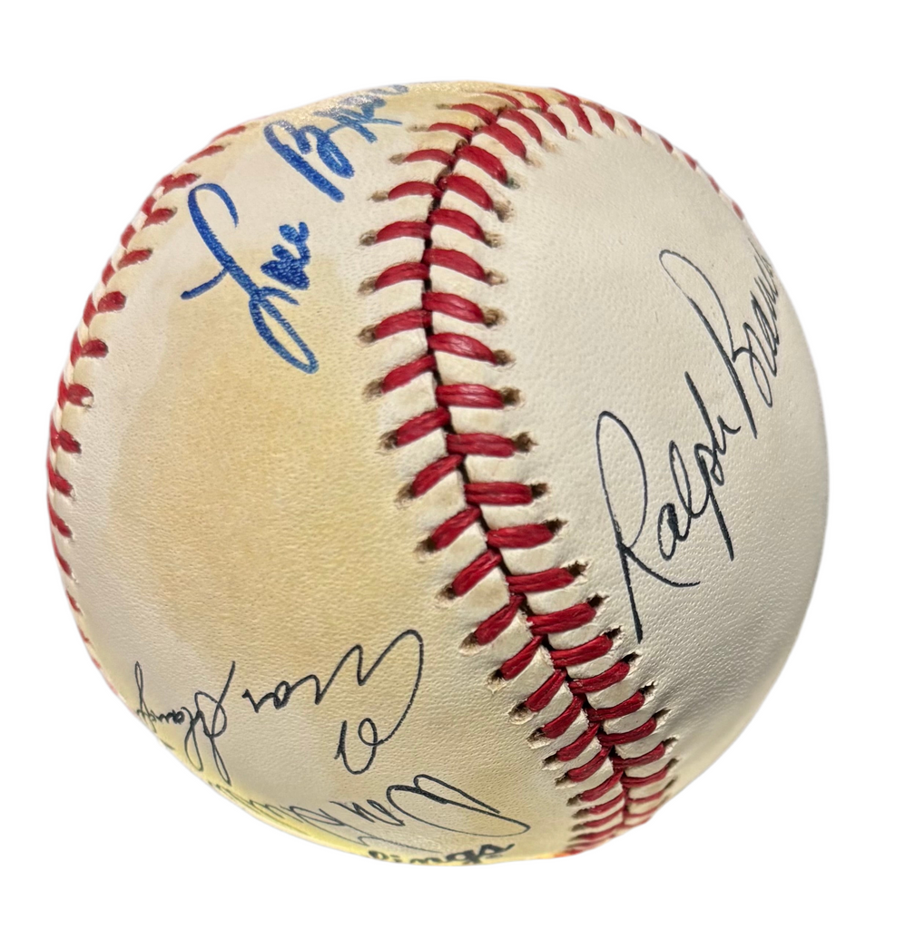 Inscribed Lou Brock along with, Don Gullett, Enos Slaughter, Warren Spahn, Ralph Branca signed baseball, Rawlings Authentic National League Baseball