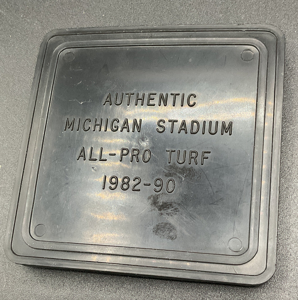 Tom Brady Action Figure with a piece of Michigan field turf.