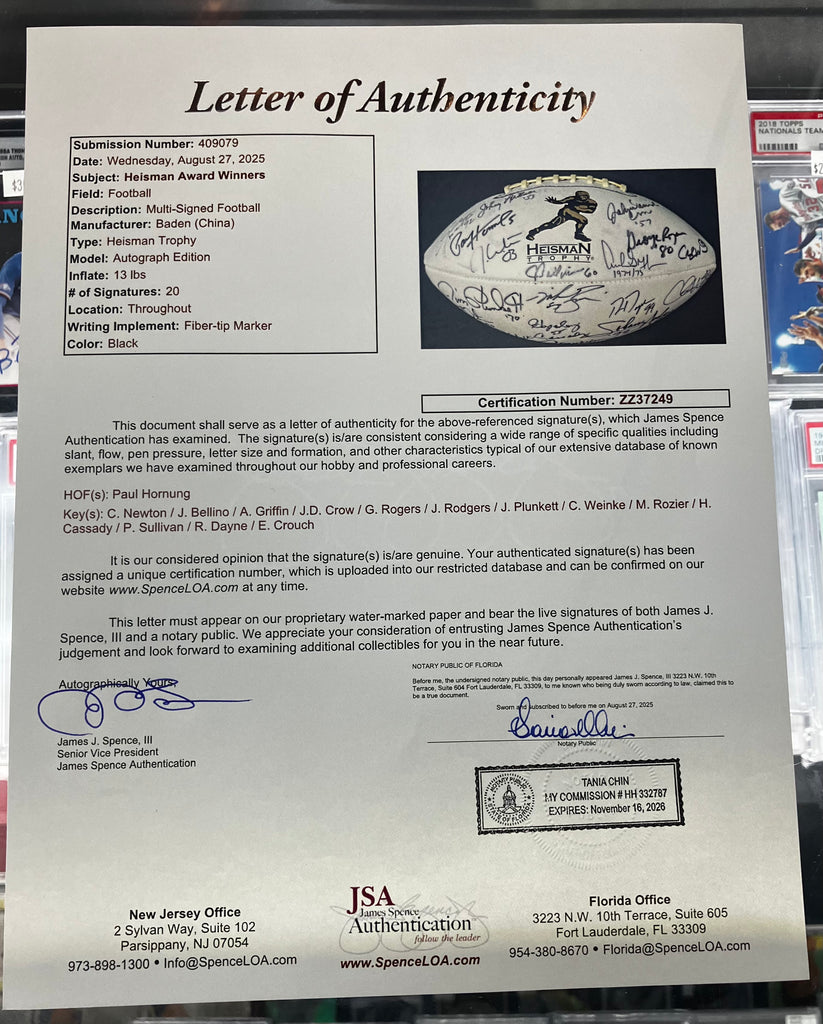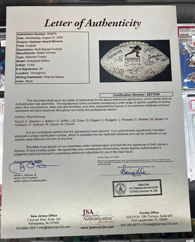 Multy Signed Heisman Trophy Winners Football JSA COA (Gold Logo)