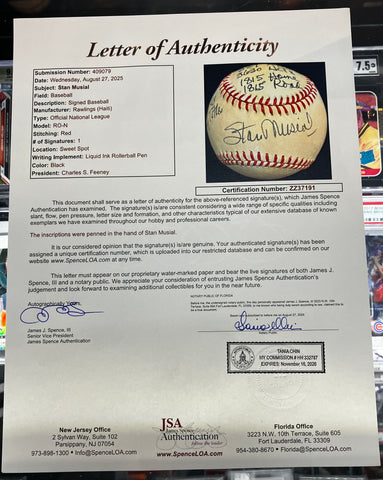 Stan Musial Signed Baseball JSA COA